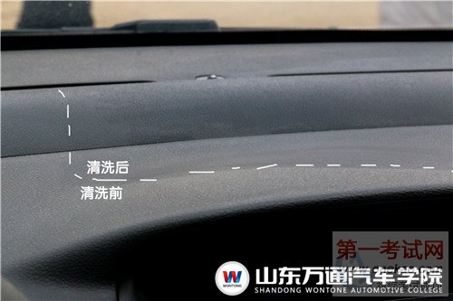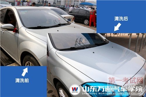 在洗车结束以后,山东万通的师生们为车主的爱车进行了一系列检查,包括全车灯光检测、仪表显示检测、雨刮器和车窗清洗装置检测,发动机舱各管路、接头、皮带检测,机油油位检测等等。