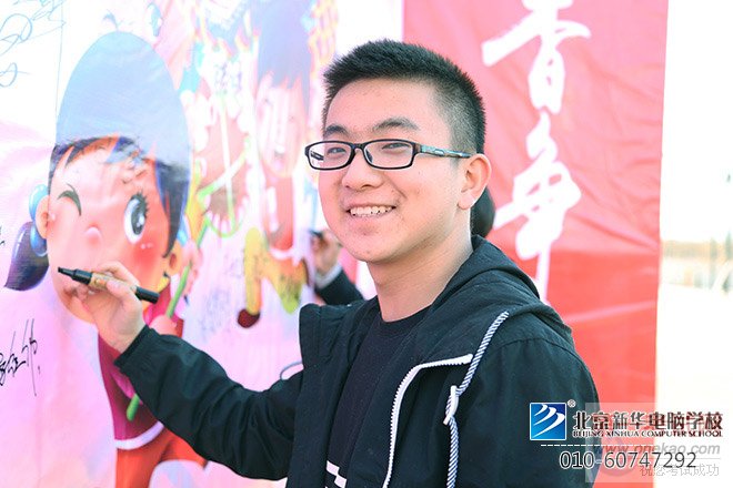 在签名墙上写下祝福