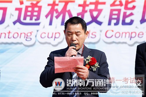 学校校长潘太煌致开幕词:“本次汽修技能大赛不仅是汽修学子大展身手的绝佳平台,也是湖南万通理实一体化教学成果的一次大检阅。湖南万通汽修学校作为汽修后市场的专业人才培养基地,一直致力于为行业培养集知识、技术、能力、素养四位一体的全新创新型汽修精英。本次大赛的举办,将有效提升社会对汽修行业的认知度,推广汽车维修新技术、新理论。希望同学们发挥自己所学知识不畏困难,取得佳绩!”