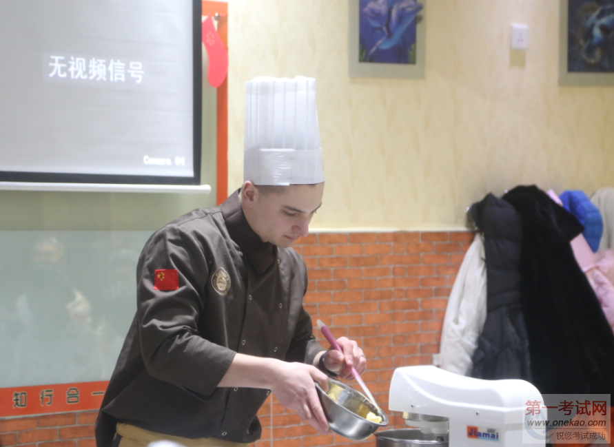 经典西点的学生们早就着装整齐的坐在教室中等待这位“洋老师”,用他们真诚的心意来欢迎这位老师的到来。见到老师的第一眼,全体同学都被他帅到了,经过大家的鉴定绝对是纯天然的帅哥一枚,穿着厨师服的他真的是帅出了新的高度。