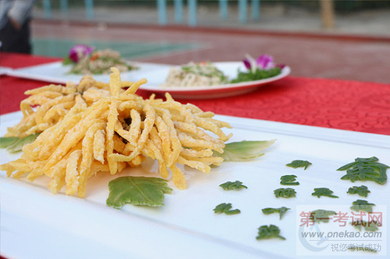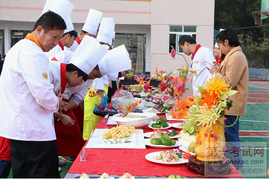 据了解,本次技能大赛分为四个环节,分别是指定菜肴葱爆肉丝的制作、刀工蓑衣黄瓜的展示、食品雕刻功力的展示及自选菜肴的制作。评委将根据作品的颜色、造型、创意及营养搭配是否合理等方面进行打分评定。