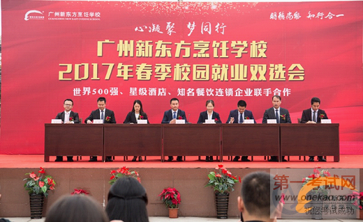 源自让更多人通过烹饪技能进入优秀企业而改变命运的梦想,2017年2月20日,广州新东方与30余家大型合作企业在南沙校区隆重举行春季就业双选会。
