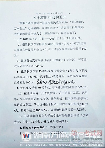 文章导读:湖南万通汽修学校被湖南省民政厅立为“大众创新,万众创业”定点机构,现联合政府倾情助学。